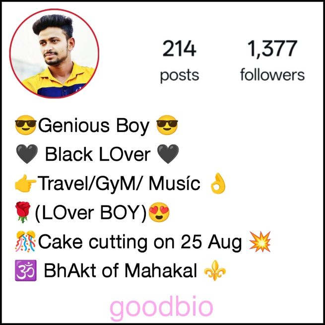 नमस्कार दोस्तों आपका स्वागत है goodbio.org मे! आज मैं आपके लिए Instagram Bio For Boys लेकर आया हूं जो आपके इंस्टाग्राम बायो में स्टाइलिश और सबसे ज्यादा अच्छे दिखेंगे. दोस्तों आपके यहां पर इंस्टाग्राम बायो के लिए सबसे बेस्ट Instagram Bio For Boys Attitude मिलेंगे